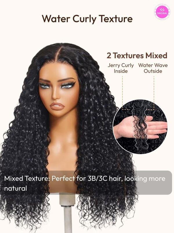 UNice 7x5 Bye Bye Knots & 13x4 Pre-Everything™ Lace Frontal Natural Black Water Wave Curly Drawstring No Baby Hair